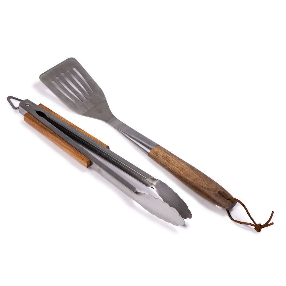 2-osainen grillisetti sisältää grillilastan ja -pihdit, jotka on valmistettu käyttöä kestävistä materiaaleista.