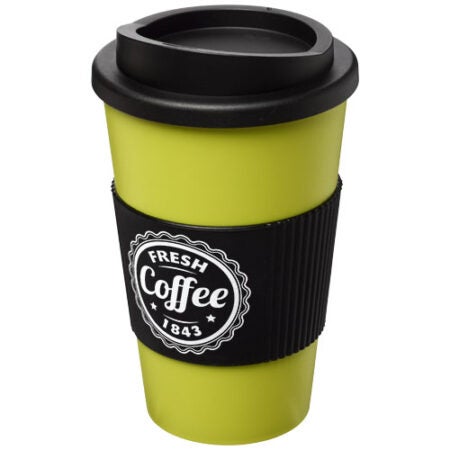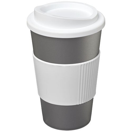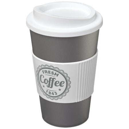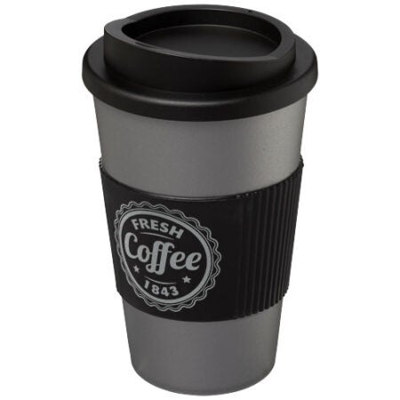 Kaksiseinäinen eristetty termosmuki, jossa on kierrettävä kansi ja silikoninen oterengas.