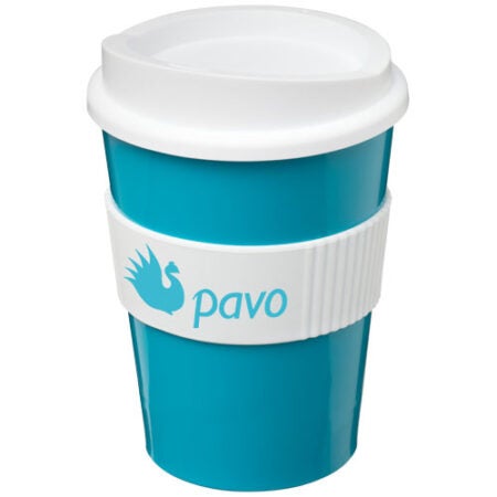 Yksiseinäinen termosmuki, jossa on painettava kansi ja silikoninen oterengas. Tilavuus on 300 ml.