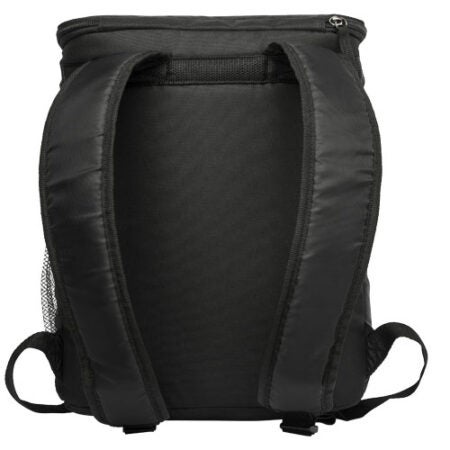 Vetoketjullinen päälokero, vetoketjutasku edessä, verkkotasku sivulla ja topatut säädettävät olkaimet.