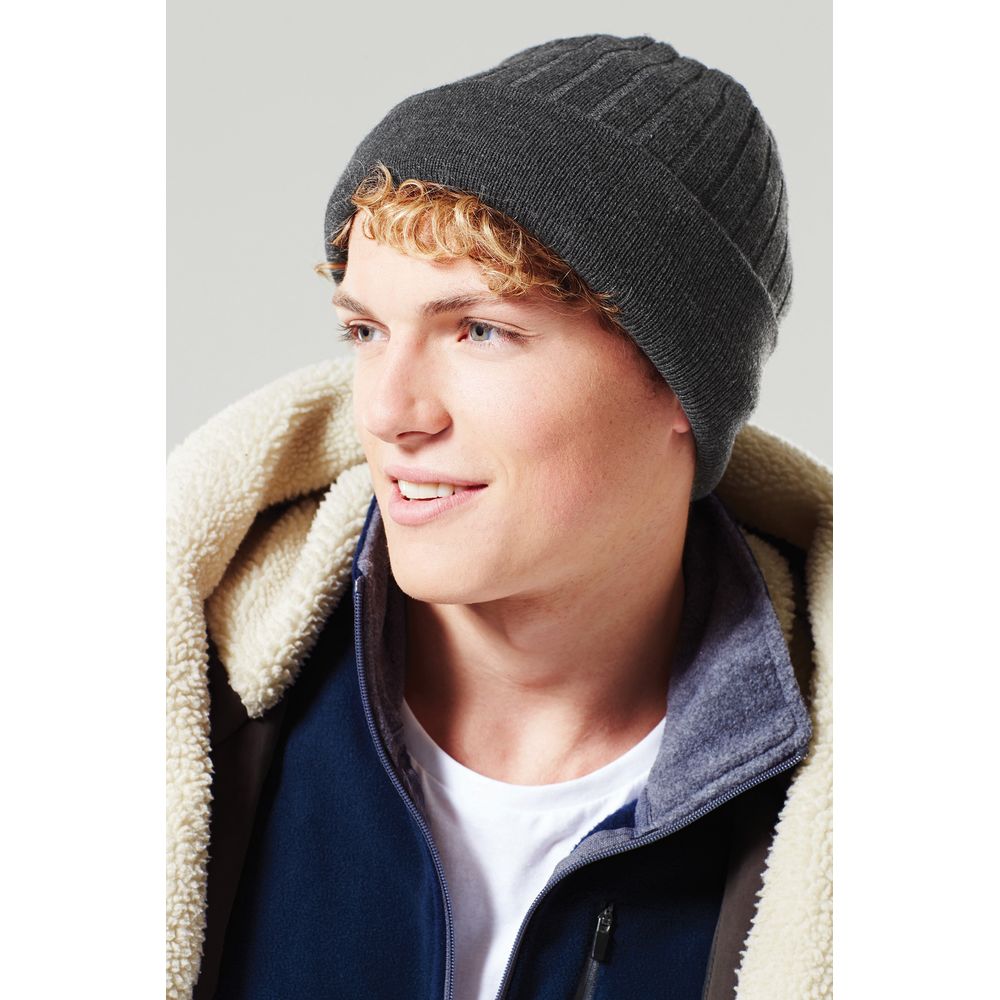 Lämmin Beechfield Thinsulate vuorellinen pipo jonka pääliosa ribbineulosta ja käännös sileää neulosta.