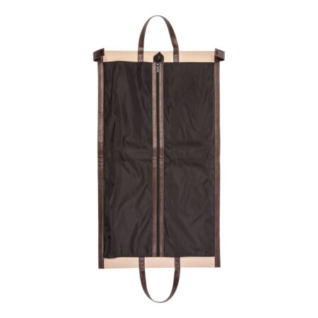 Laadukas ja tarkasti viimeistelty pukupussi on valmistettu canvaksesta ja vegaanisesta nahasta (PU).