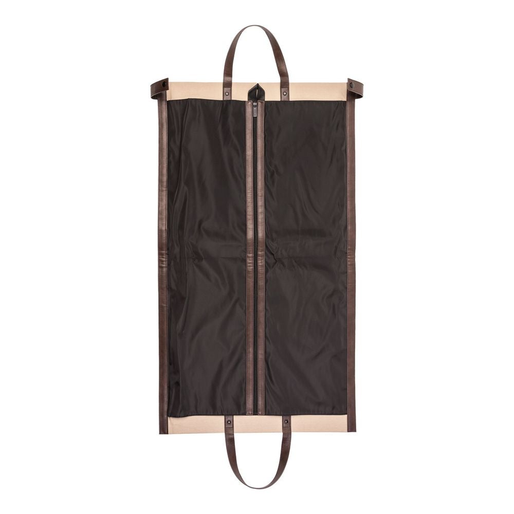 Laadukas ja tarkasti viimeistelty pukupussi on valmistettu canvaksesta ja vegaanisesta nahasta (PU).