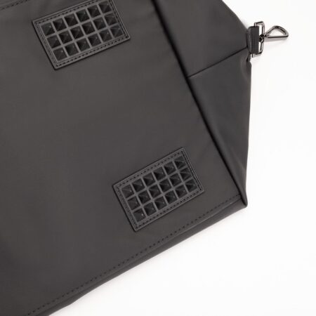 Valmistettu vedenpitävästä Tech PU -materiaalista ja siinä on iso lokero, jonka sisällä on suurempi verkkotasku toisella puolella ja pienempi kangastasku matkapuhelimille ja pikku tavaroille.