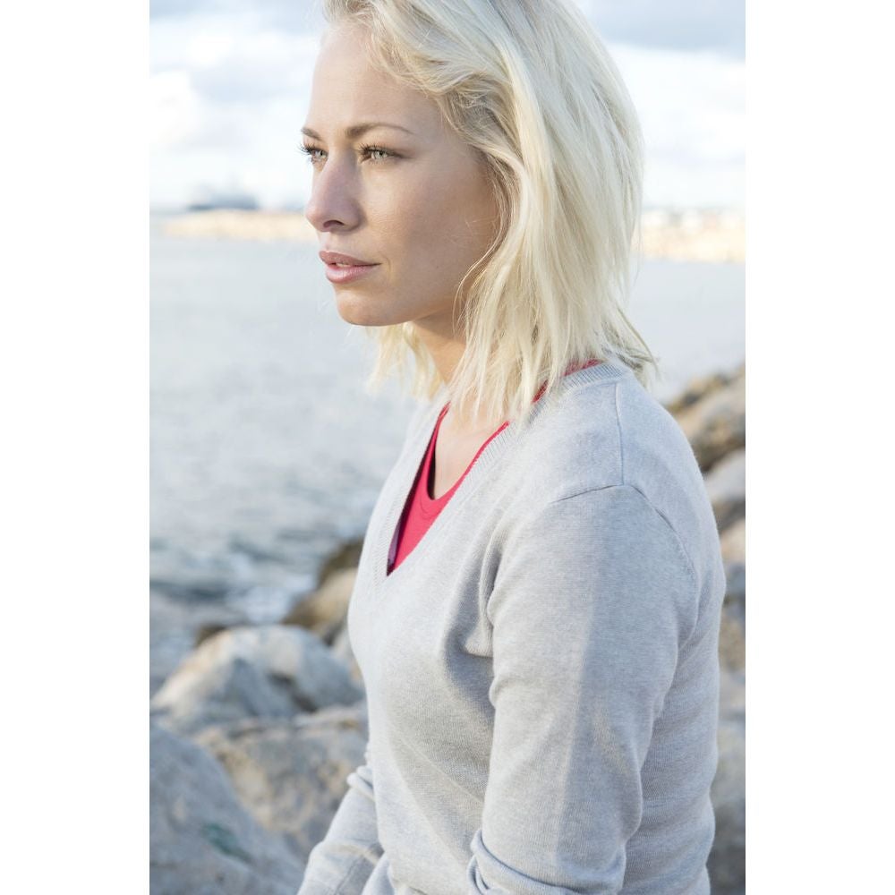 Clique Aston naisten V-aukkoinen, hienoneuloksinen neule. Erittäin pehmeä silikonikäsittelyn ansiosta.