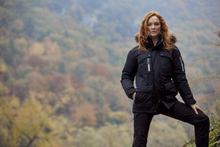 Joustoneulos hihojen sisäpuolella, irrotettava huppu, myös karvareunus on erikseen irrotettavissa
