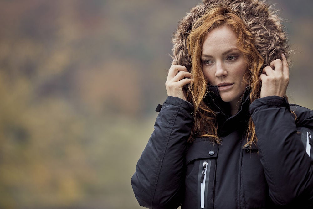 Joustoneulos hihojen sisäpuolella, irrotettava huppu, myös karvareunus on erikseen irrotettavissa