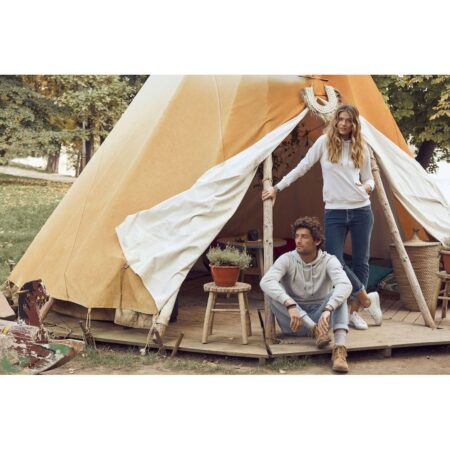 Collegeneulosta, harjaamaton sisäpuoli, vahvistettu niskasauma ja 1×1-resorit hihansuissa ja helmassa. Kätevä ratkaisu kuulokkeille.