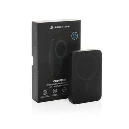 Compton 10000mAh Varavirtalähde Kierrätysmateriaalista. Comptonin magneettinen teknologia kiinnittyy helposti iPhone 12:een ja uudempiin malleihin sekä uuden sukupolven Android-puhelimiin.