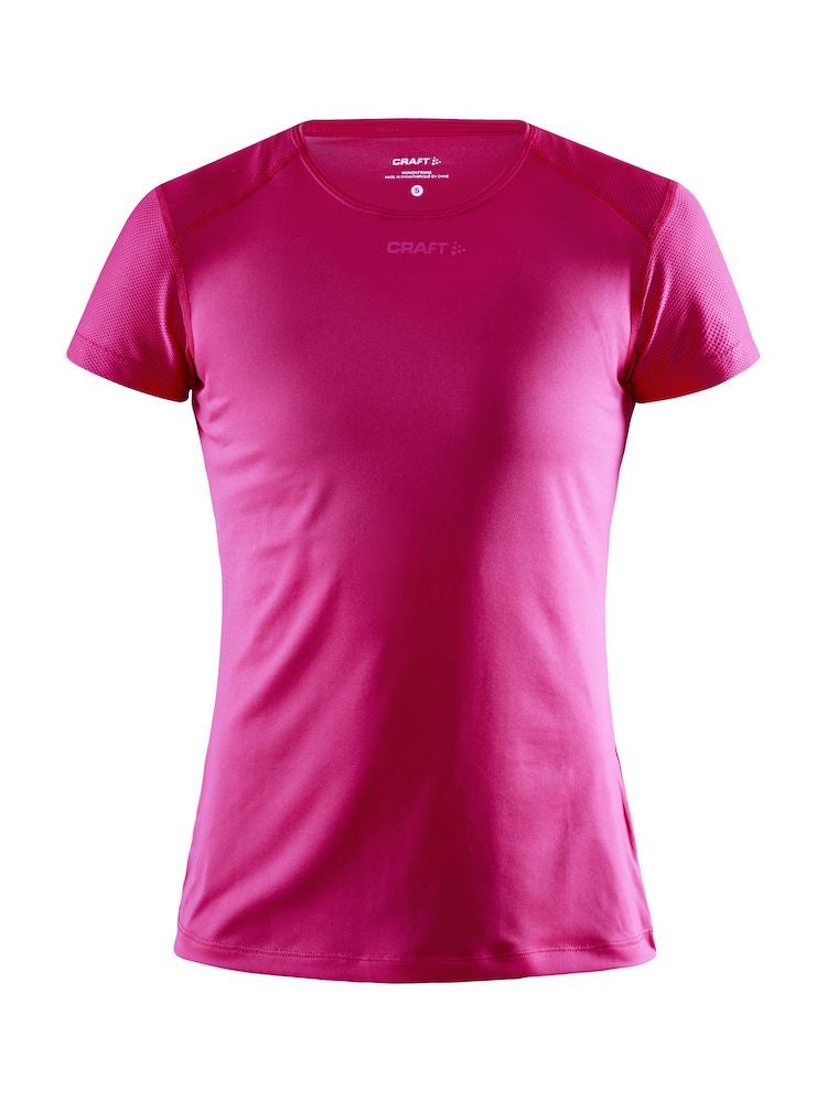 Craft Naisten ADV Essence SS Tee on pehmeä, miellyttävä ja istuva treenipaita erinomaisella kosteudensiirtokyvyllä.