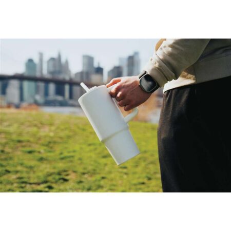 Kierrettävässä kannessa on kaksoistoiminto, joka tarjoaa kätevän juomaletkun tai mahdollisuuden käyttää pilliä.