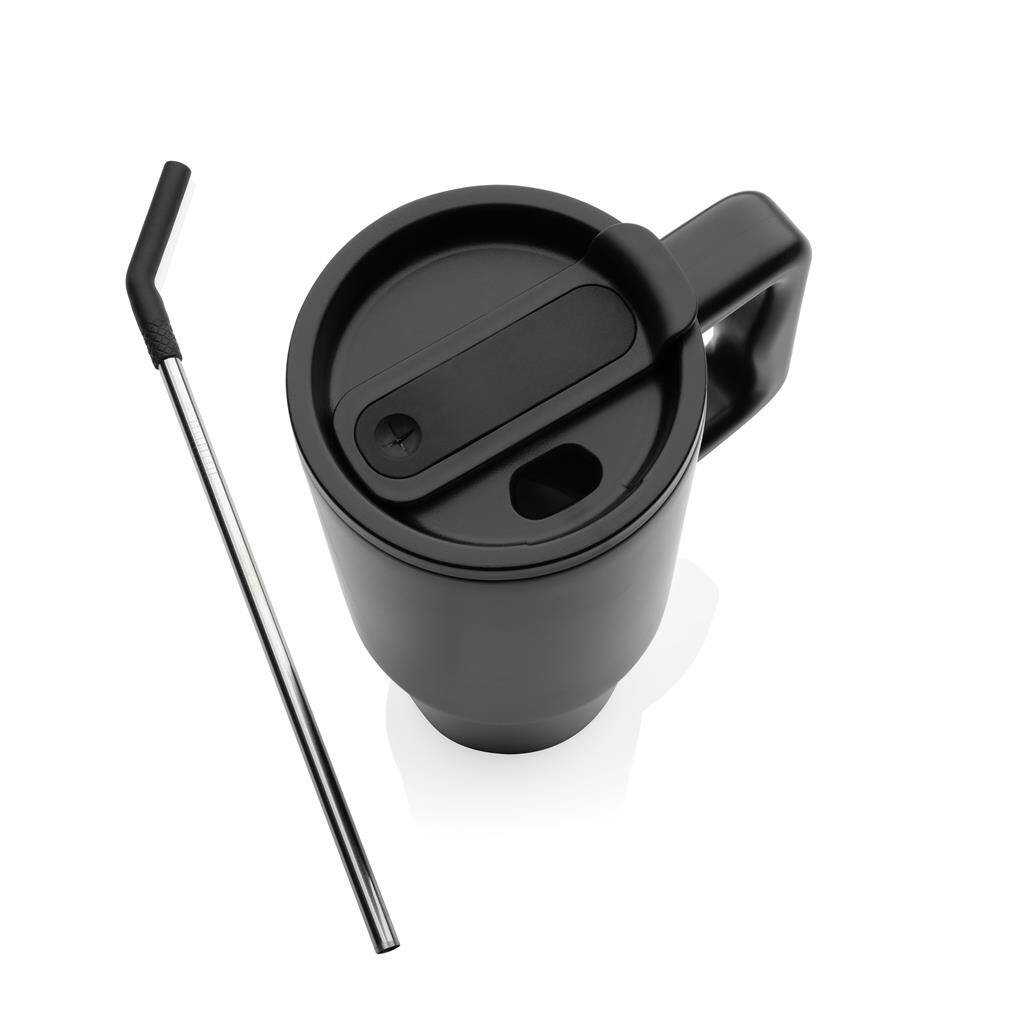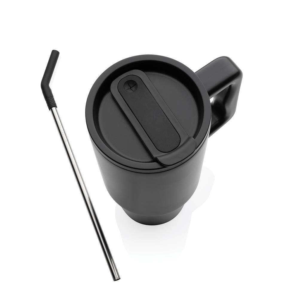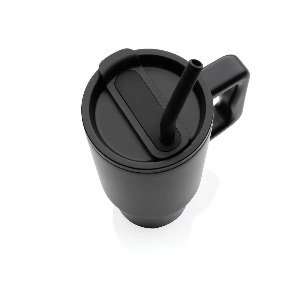 Kierrettävässä kannessa on kaksoistoiminto, joka tarjoaa kätevän juomaletkun tai mahdollisuuden käyttää pilliä.