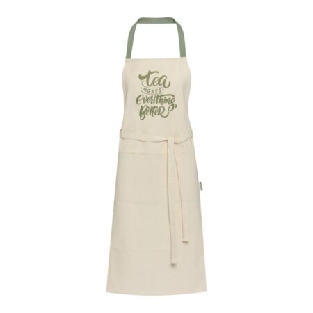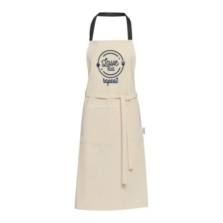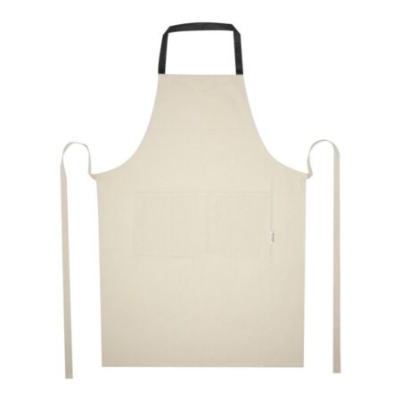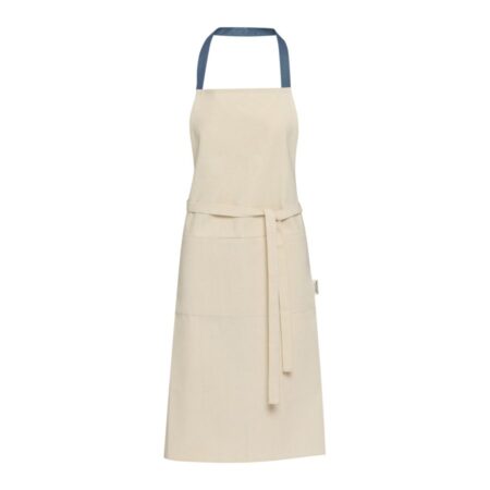 Esiliina Kierrätetystä Puuvillasta. Ekologinen esiliina on valmistettu 100-prosenttisesti GRS-sertifioidusta 210 g/m²:n kierrätetystä puuvillasta.