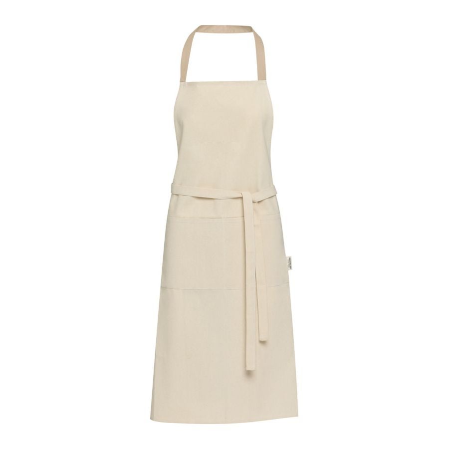 Esiliina Kierrätetystä Puuvillasta. Ekologinen esiliina on valmistettu 100-prosenttisesti GRS-sertifioidusta 210 g/m²:n kierrätetystä puuvillasta.