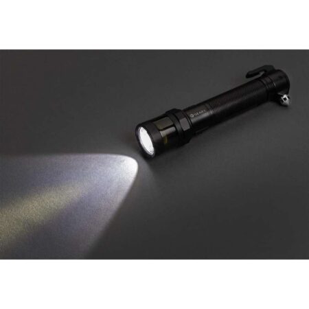 Taskulamppuun on integroitu vyöleikkuri ja ikkunavasara. Kyljessä magneetti jonka avulla lampun saa kiinni metallipintaan.