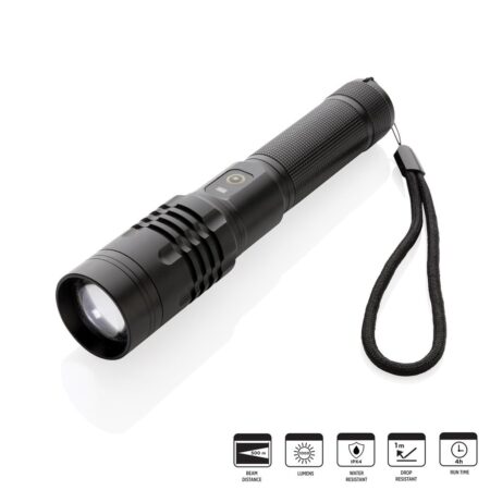 IP4-vedenkestävyysluokituk sen ansiosta taskulamppu on säänkestävä, joten sen voi myös ottaa mukaan ulkoillessa.