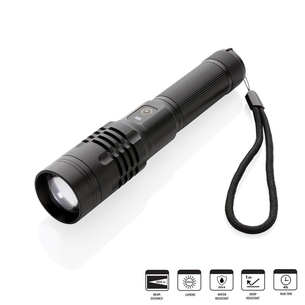 Tehokas lamppu tuottaa jopa 1000 lumenia, ja säteen, joka ulottuu jopa 500 metrin päähän.