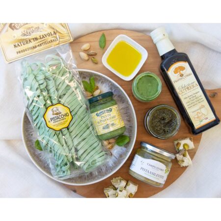 Herkkulahja 4 Pistaasi. Laadukkaat italian herkut, ”pistaasin himoissa” pasta & mousse. Mukana reseptit pääruokaan sekä jälkiruokaan.