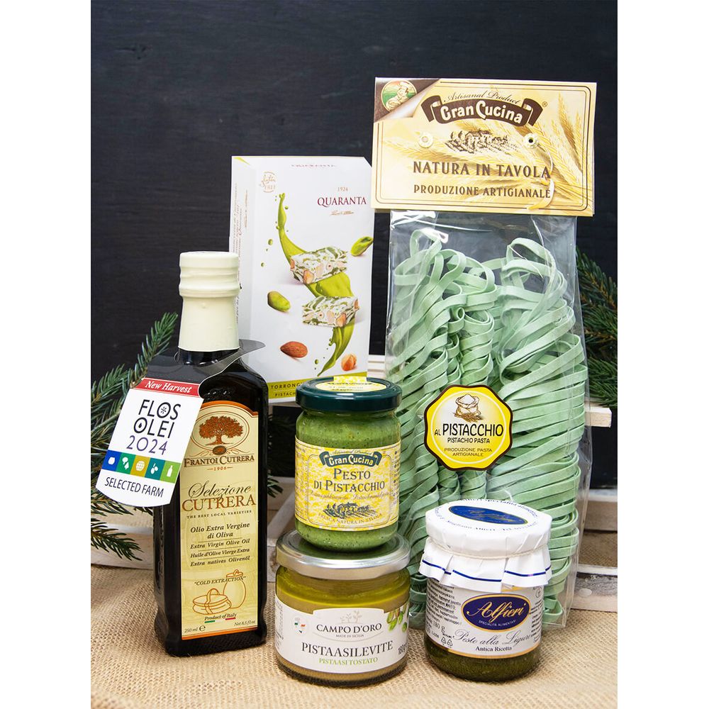 Herkkulahja 4 Pistaasi. Laadukkaat italian herkut, ”pistaasin himoissa” pasta & mousse. Mukana reseptit pääruokaan sekä jälkiruokaan.