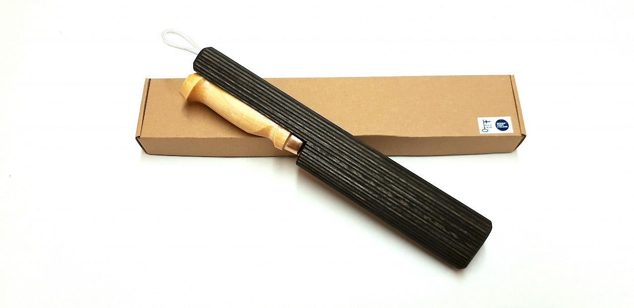 Filetti menee kätevästi puutuppeen, joka toimii samalla myös kalanuijana. Tupen ansioista filetti toimii hyvin myös pelkästään keittiökäytössä.