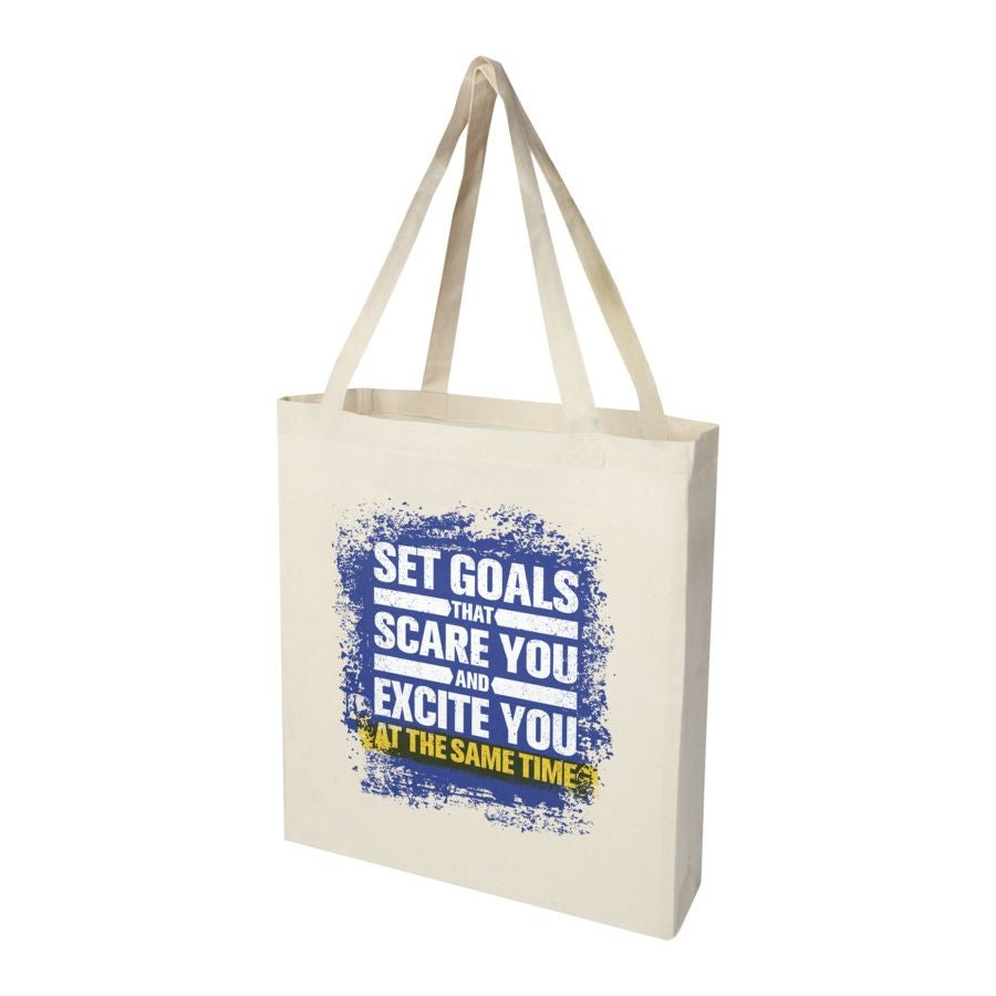 Puuvillan tiheys on 140 g/m², se on kestävä, pitkäikäinen ja sopiva raskaiden esineiden kuljettamiseen. Kassia on helppo kantaa mukana 30 cm pitkistä olkakahvoista.