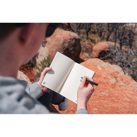 80 aukeamaa/160 kermanväristä, viivoitettua ja 75 gramman painoista sivua kierrätetystä paperista varmistavat, että voit kirjoittaa ylös jokaisen mieleen tulevan ajatuksen.