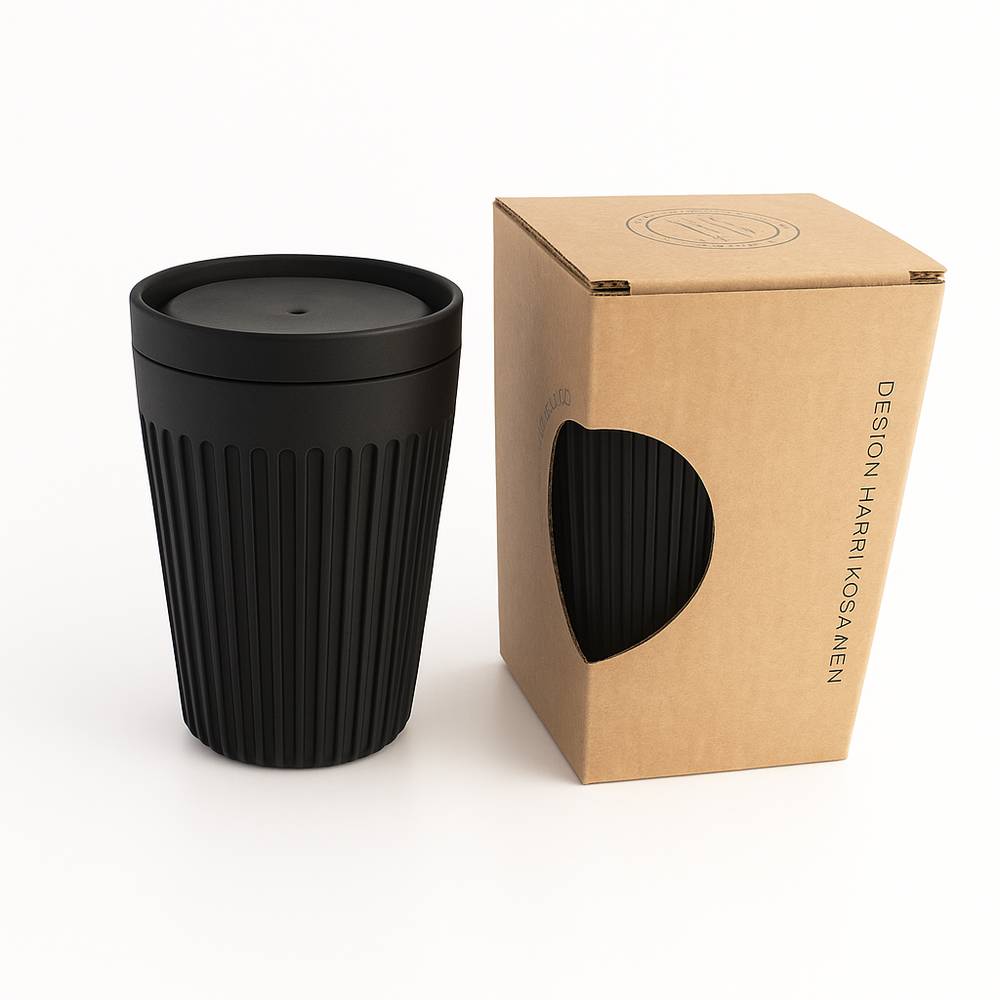 Kotimainen Take Away muki 2,5 dl. Laadukas ja ekologinen kestomuki kuumalle juomalle joka on konepesun kestävä.