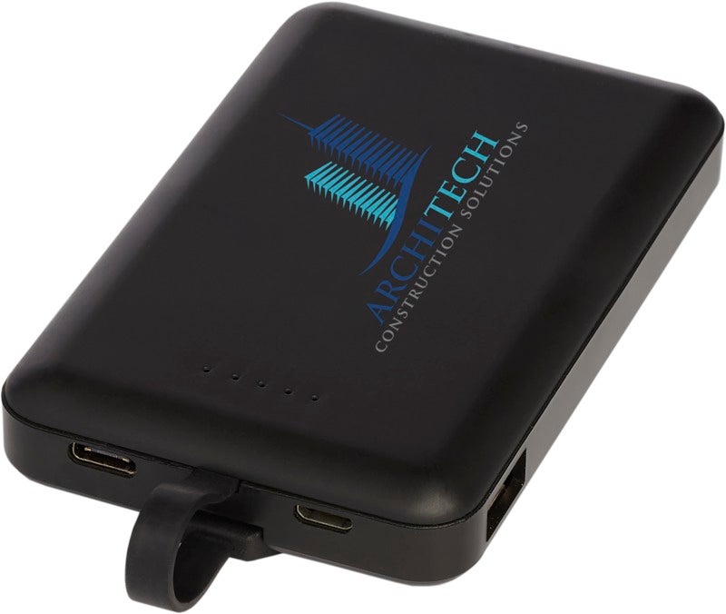 Langaton varavirtalähde, jossa on 3-in-1-yleiskaapeli ja 5 000 mAh:n litiumpolymeeriakku, langaton latauslähetin ja integroitu 3-in-1-kaapeli.