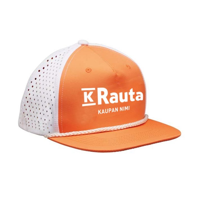 Trendikäs uutuus, kevyt 130 g/m2 pongee-kankainen suoralippa, jossa rei’itetty takaosa. Lippaan mahdollista valita kontrastivärinen naru.