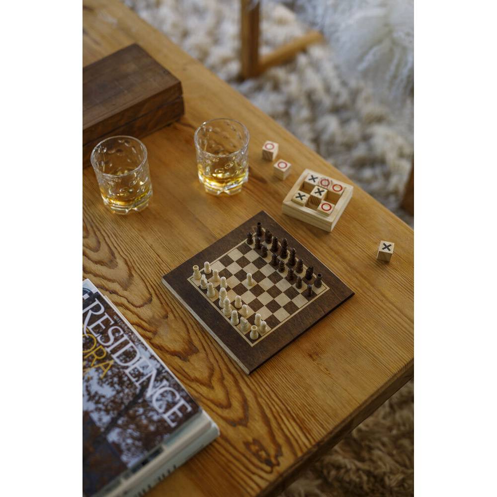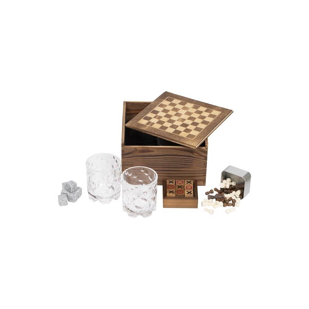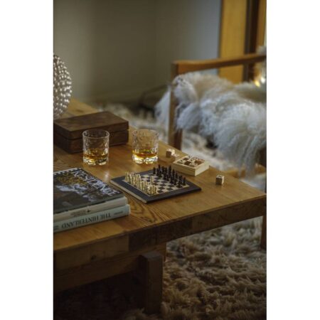 Lord Nelson Pelisetti. Klassinen pelisetti koko perheelle. Shakki ja ristinolla samassa paketissa – mukana myös kaksi pyöritettävää Whisky-lasia.
