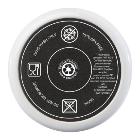 Mukin tilavuus on 1 200 ml, minkä ansiosta voit pitää huolta nesteytyksestäsi tyylikkäästi koko päivän ajan. Mukana roisketiivis painettava kansi, jossa on kaksi aukkoa ja kääntyvä sulkemismekanismi.