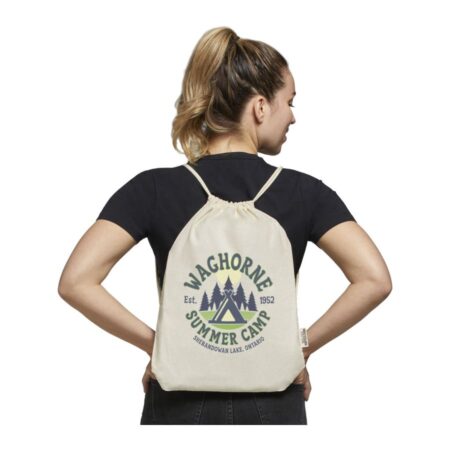 Kiristysnyörin avulla laukku on helppo avata ja sulkea, ja 140 g/m²:n puuvillamateriaali on vahvaa ja kestävää.