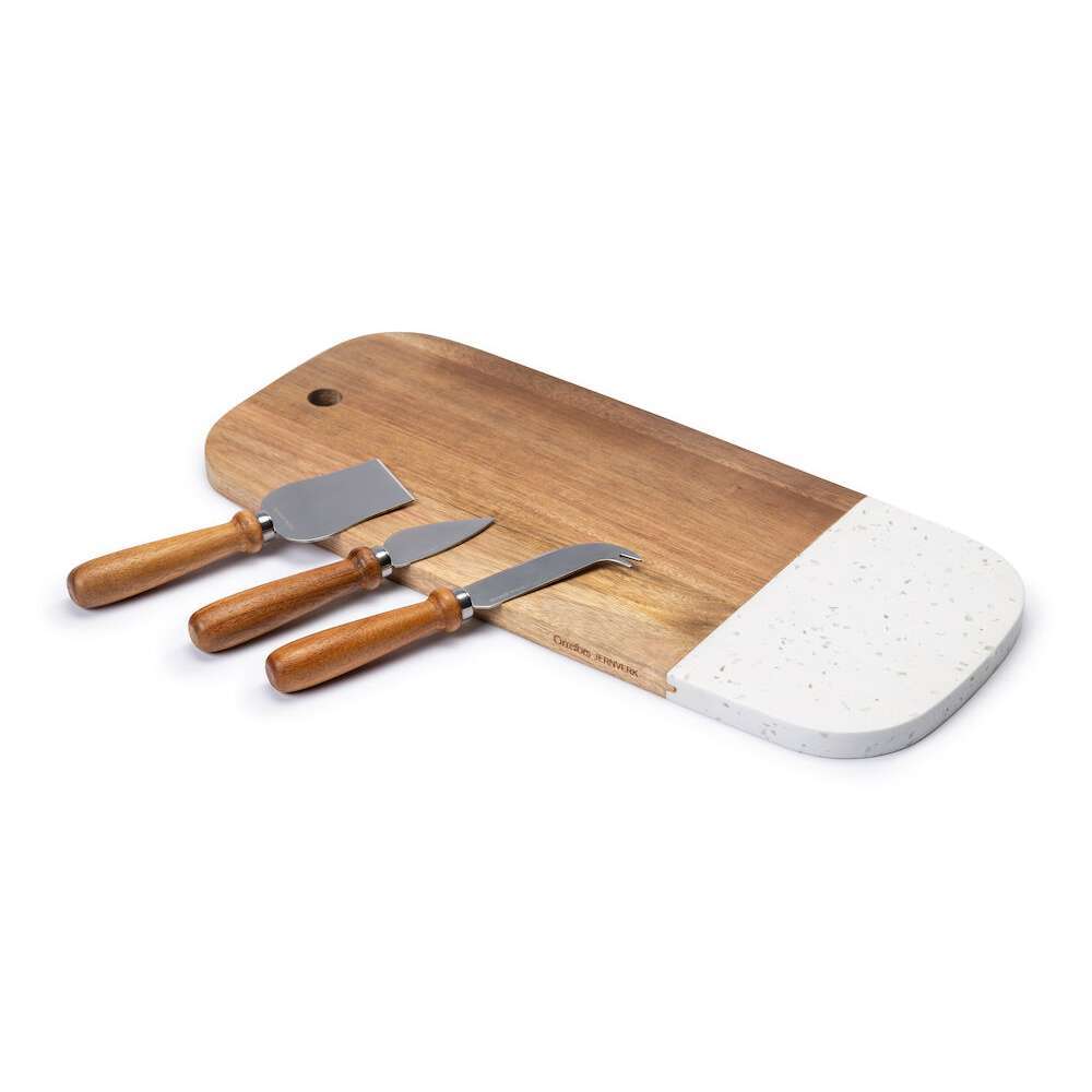 Setissä mukana myös kolme tyylikästä juustoveistä, joissa on yhteensopivat kädensijat.