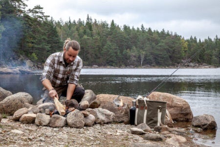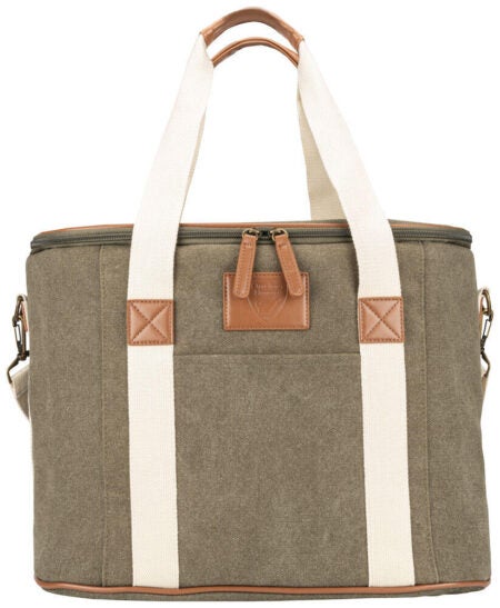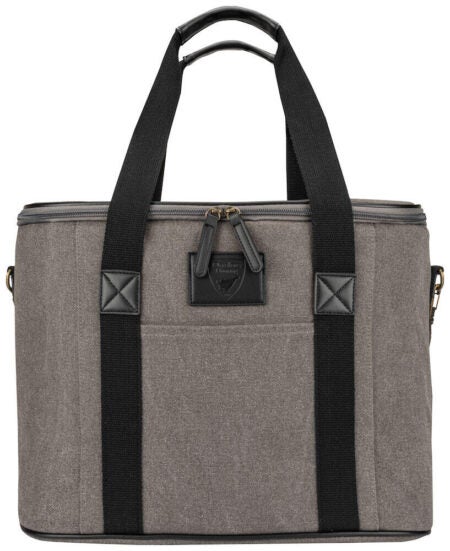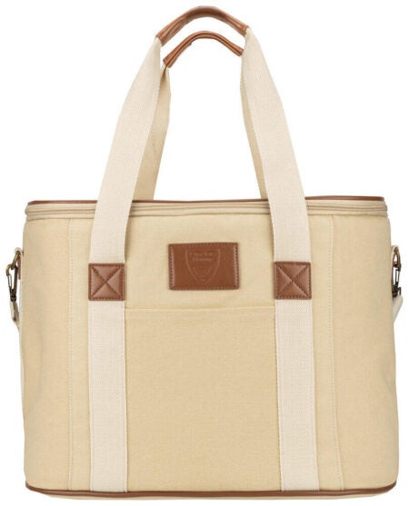 Orrefors kylmälaukku on vahvaa kangasta, ja siinä on säädettävä olkahihna ja kantokahva.