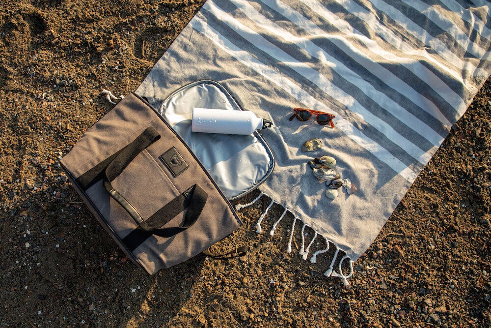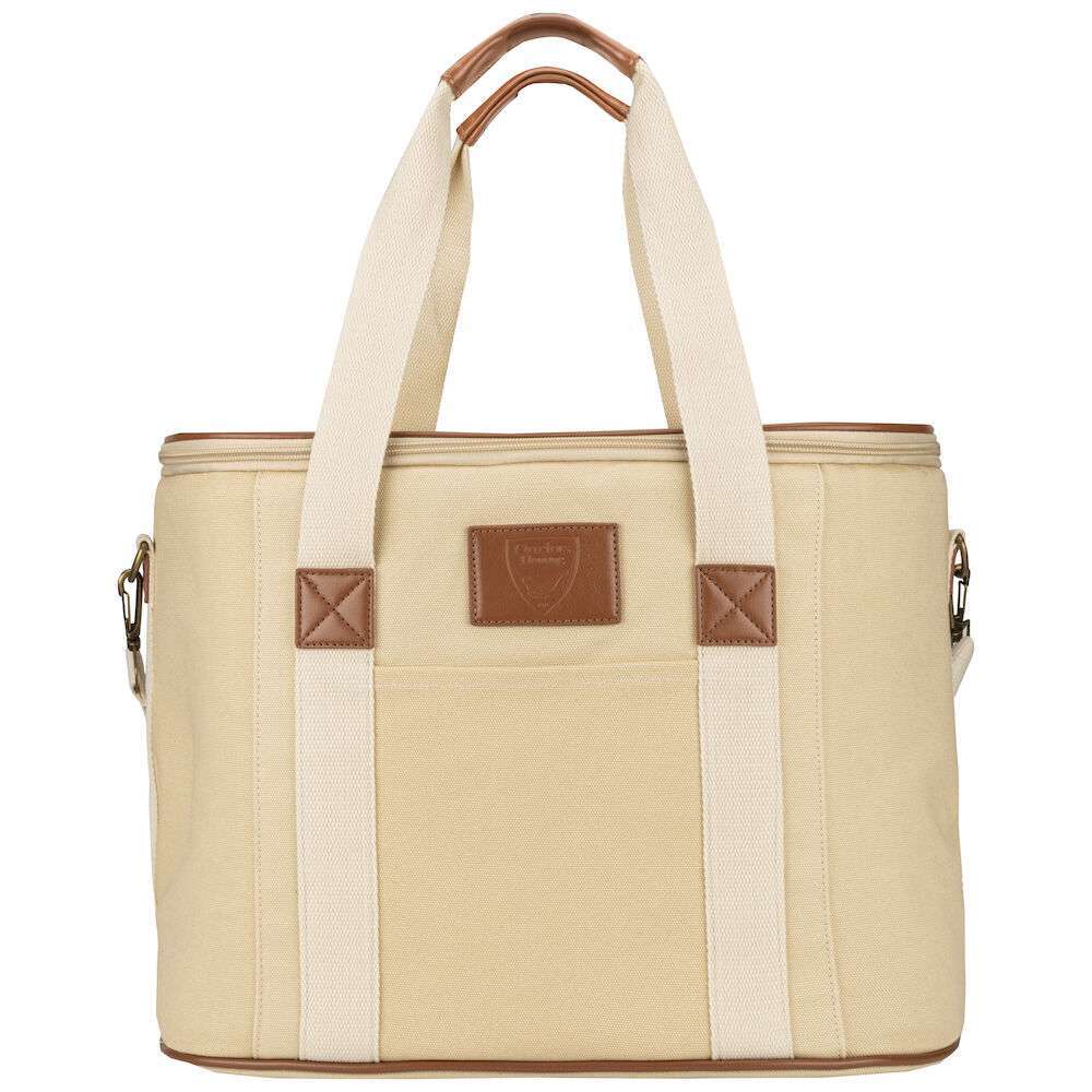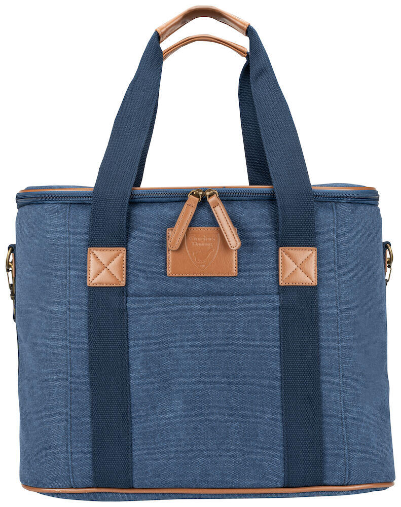Orrefors kylmälaukku on vahvaa kangasta, ja siinä on säädettävä olkahihna ja kantokahva.