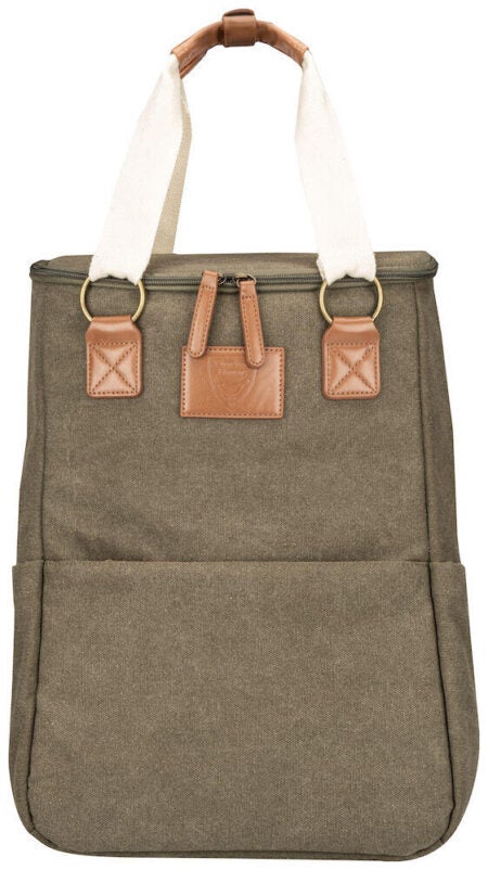 Orrefors kylmäreppu. Käytännöllinen reppu on vahvasta kankaasta. Iso täyttöaukko ja kolme pienempää taskua muille tavaroille.