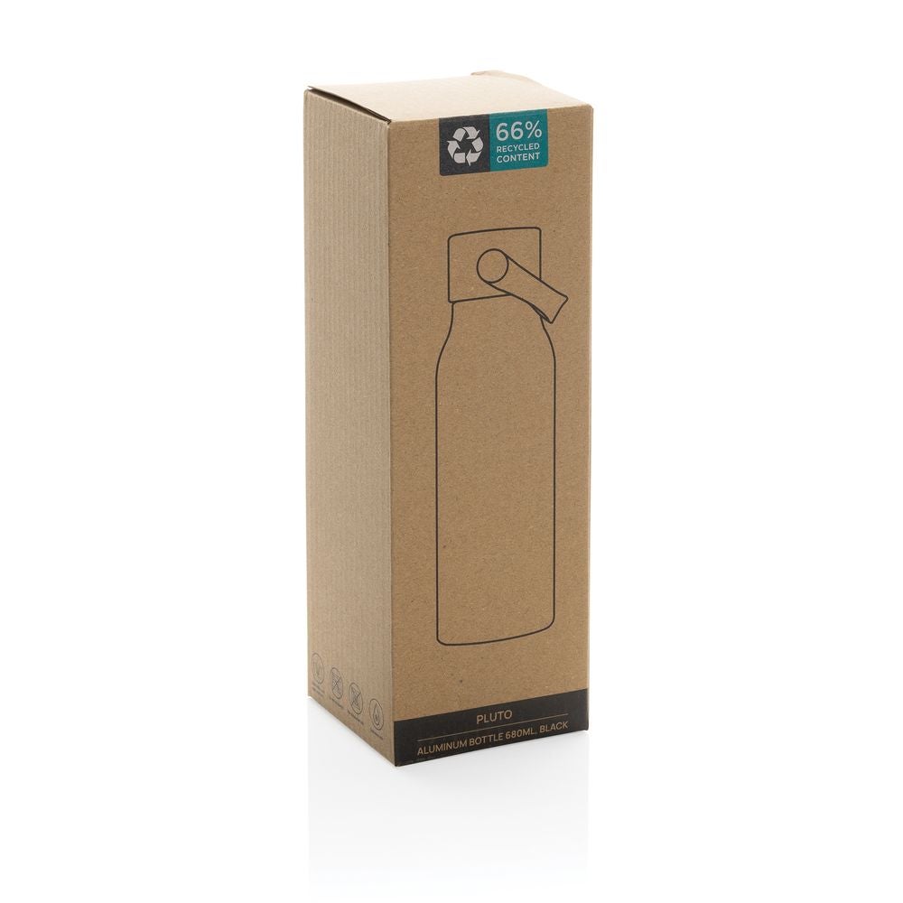 Pluto Juomapullo Kierrätettyä Alumiinia 680 ml. Vesipullossa on yksiseinäinen rakenne, jossa on kierrettävä, vuotamaton kansi.