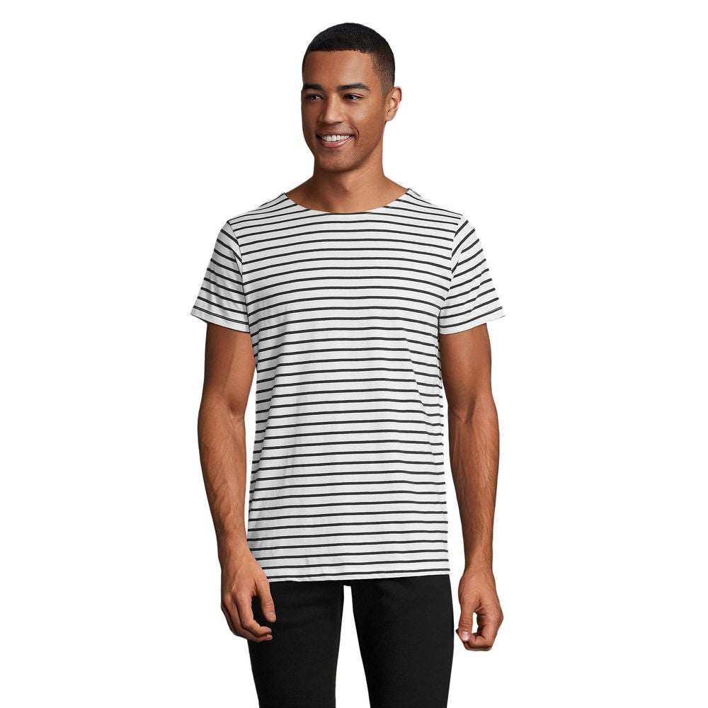 Klassinen ja aina muodikas raitapaita joka on valmistettu pehmeästä rengaskehrätystä kampapuuvillasta.