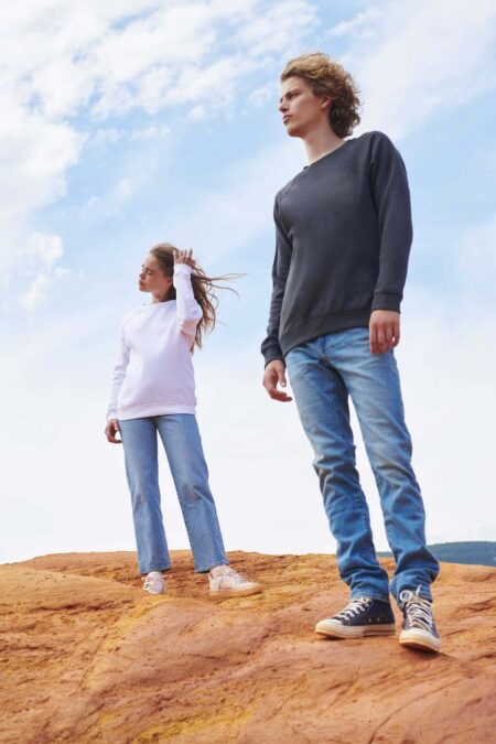 Tämä collegepaita on valmistettu laadukkaasta luomupuuvillasta ja kierrätyspolyesterista, mikä tekee siitä paitsi pehmeän myös ekologisen vaihtoehdon.
