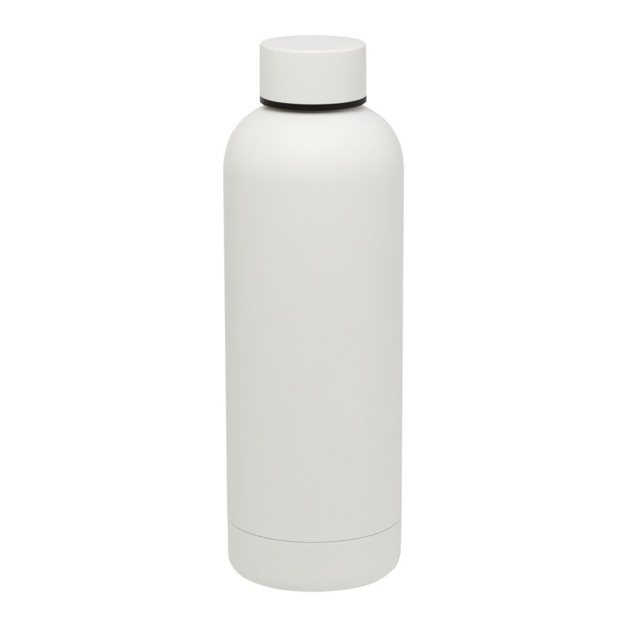 Ruostumattomasta teräksestä valmistettu eristetty rakenne estää kondensoitumisen pullon sisäpuolelle ja trendikkään mattapintainen jauhemaalattu pinta tekee pullosta erityisen kestävän.