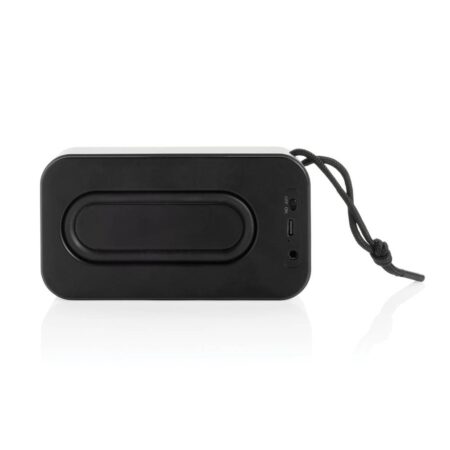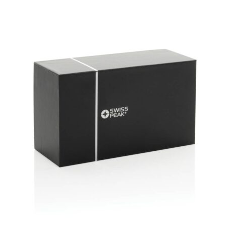 Swiss Peak RCS Recycled Aluminum 10W -kaiutin tarjoaa tehokkaan ja laadukkaan äänen syvällä, kaikuva bassolla integroidun subwooferin ja kahden 5 W:n kaiuttimen ansiosta. Se on suunniteltu poikkeukselliseen äänentoistoon ja siinä on BT 5.3 -yhteys, joka takaa saumattoman yhteyden ja automaattisen pariliitoksen, joten laitteen asennus laitteisiisi on vaivatonta. 1200 mAh:n polymeerili-ioniakun ansiosta kaiutin tarjoaa jopa 5 tuntia toistoaikaa 50 %:n äänenvoimakkuudella ja latautuu täyteen vain 2,5 tunnissa mukana toimitetulla USB-C-USB-C-kaapelilla. Lisäominaisuuksiin kuuluu USB-C-portti ja AUX-portti. Kaiutin on valmistettu RCS-sertifioidusta kierrätysalumiinista. RCS (Recycled Claim Standard) on standardi, joka varmistaa tuotteen kierrätyssisällön koko toimitusketjussa. Kierrätyssisältö yhteensä: 40 % tuotteen kokonaispainosta. Kaiutin ei sisällä PVC:tä ja se on pakattu FSC-sertifioituun lahjapakkaukseen. Kantohihna on valmistettu RPET-materiaalista.