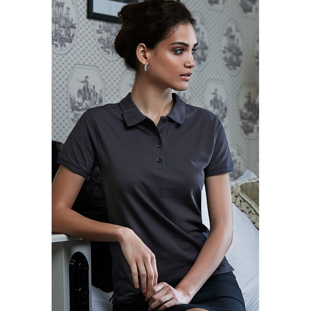 Laadukas ja jykävä (215 g/m²) Tee Jays Heavy naisten pikee jossa ryhdikkäät kaulukset.