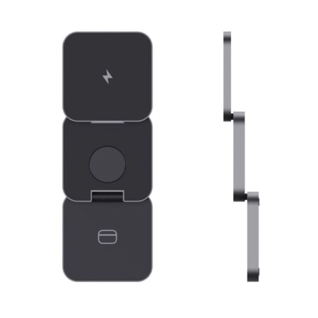 Terra 3in1 15W Taiteltava Latausteline. Ylellinen ja kokoontaitettava 3-in-1 langaton laturi, joka on valmistettu RCS-kierrätetystä ABS muovista ja RCS-kierrätetystä alumiinista.