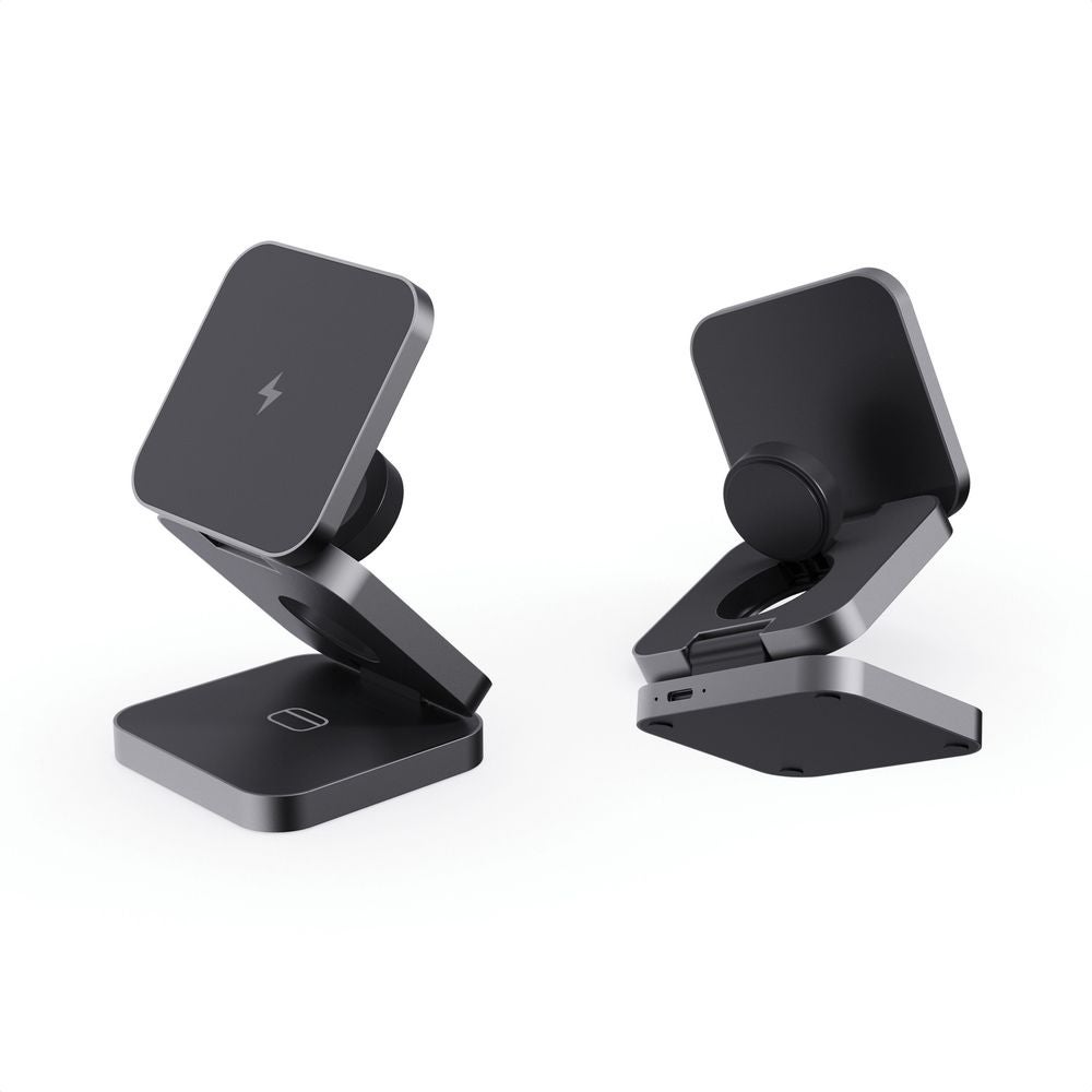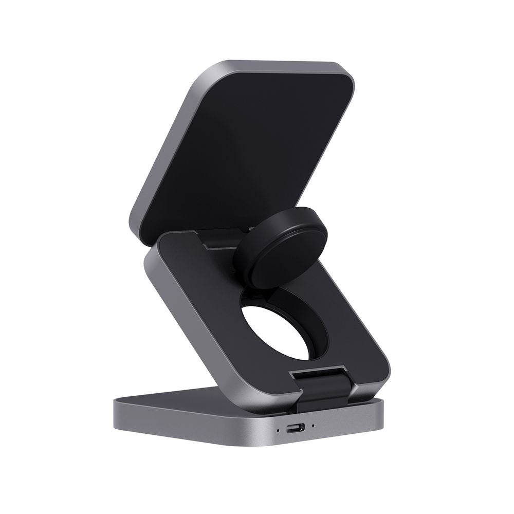 Terra 3in1 15W Taiteltava Latausteline. Ylellinen ja kokoontaitettava 3-in-1 langaton laturi, joka on valmistettu RCS-kierrätetystä ABS muovista ja RCS-kierrätetystä alumiinista.