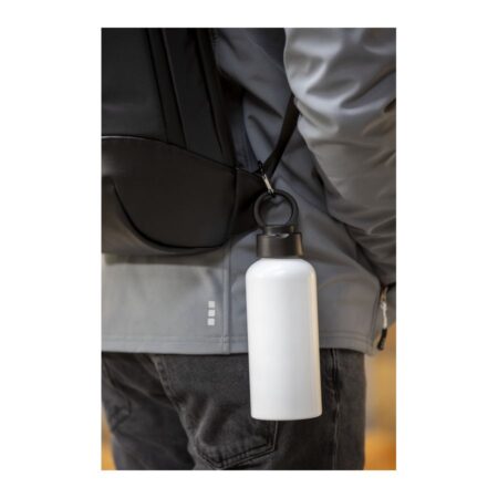 Mukana kierrätysmuovista valmistettu korkki, jossa on kantolenkki. Kevyt ja helppo kuljettaa. Tilavuus: 600 ml.