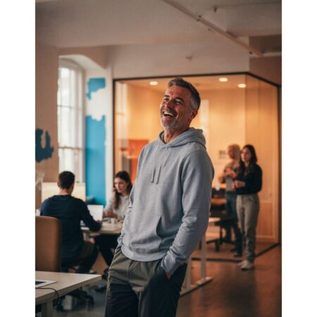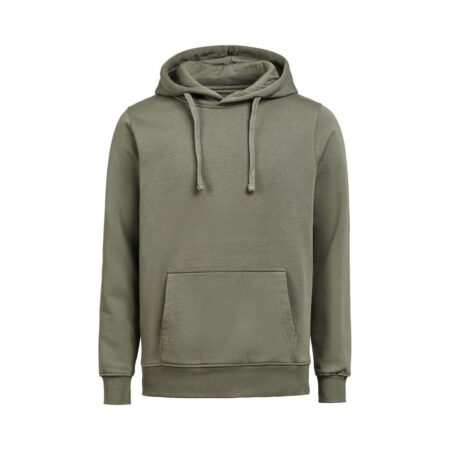 Hupparissa on säädettävä kiristysnyörillinen huppu, 2×1-resorit hihansuissa ja helmassa. Huppari on entsyymipesty, joten se tuntuu pehmeältä. Paino: 350 g/m²