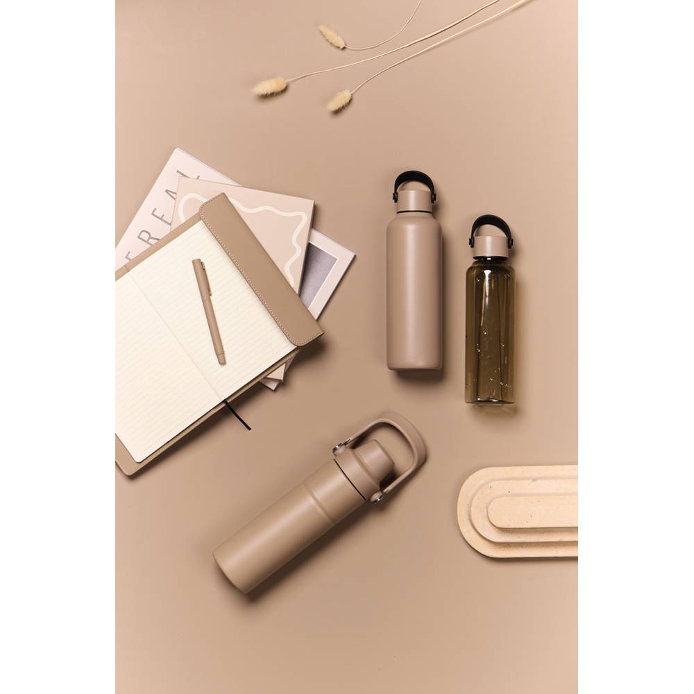 Tämä kaksiseinäinen tyhjiöpullo on valmistettu RCS-sertifioidusta kierrätetystä ruostumattomasta teräksestä ja tarjoaa sekä suorituskykyä että tyyliä. Minimalistinen PU-kahva ja mustat yksityiskohdat kuvastavat Baltimore-sarjan tyylikästä ilmettä. Kaksoisseinäinen eristys pitää juomat kylminä jopa 12 tuntia ja kuumina jopa 6 tuntia – täydellinen sekä arkeen että matkalle. Ei sovellu astianpesukoneeseen tai mikroaaltouuniin, vain käsinpesu. RCS-sertifiointi (Recycled Claim Standard) varmistaa, että koko kierrätysmateriaalien toimitusketju on todistettavasti jäljitettävissä. Tuote sisältää 80 % RCS-sertifioitua kierrätettyä ruostumatonta terästä.