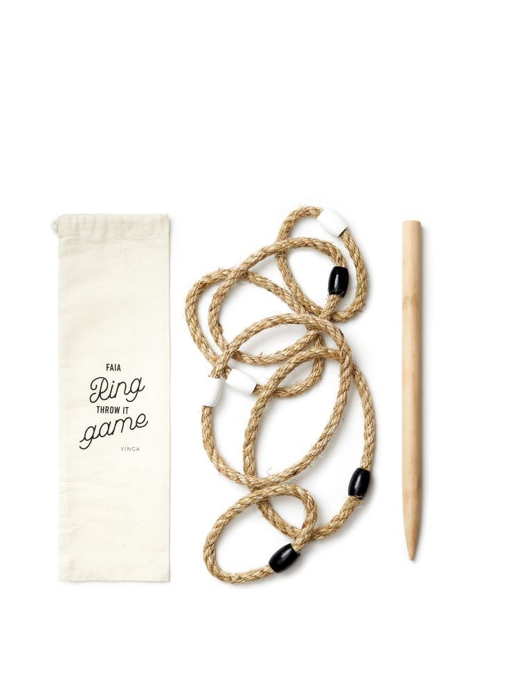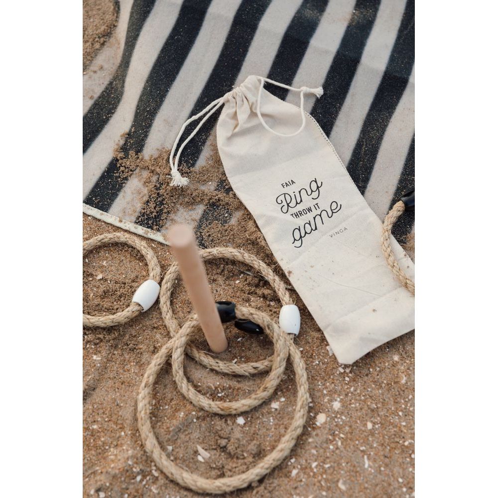 Vinga Faia Rengaspeli. Tämä ulkopeli toimii hyvin sekä rannalla että puistossa, ja se toimitetaan puuvillapussissa, joka on helppo kuljettaa mukana.