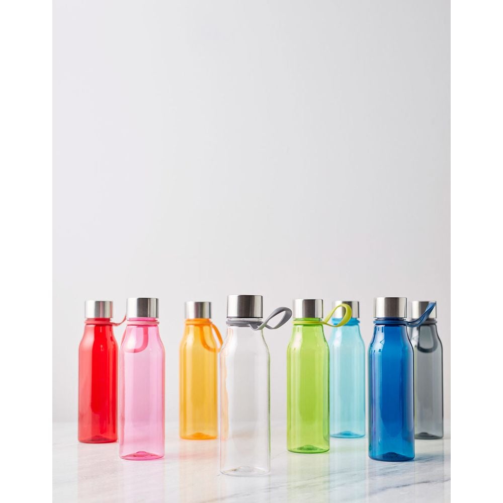Tarjolla kattava määrä kauniita värejä. Pulloa on kätevä kantaa trendikkäästä silikonilenkistä ja voit vaikka ripustaa sen siitä roikkumaan kuntopyörän tankoon.