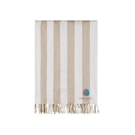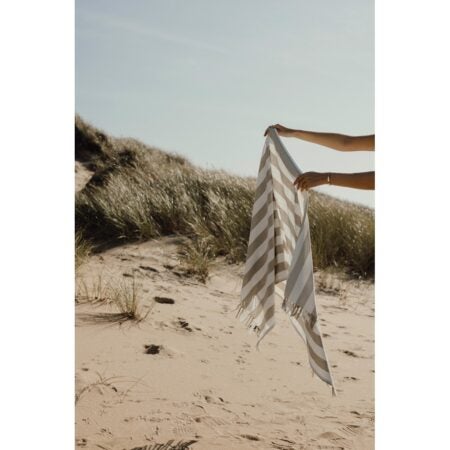 Vinga Ornos Hamam Pyyhe. Tässä hamam-pyyhkeessä on klassinen, kaksivärinen raitakuviointi ja lisäksi hapsut lyhyillä reunoilla.
